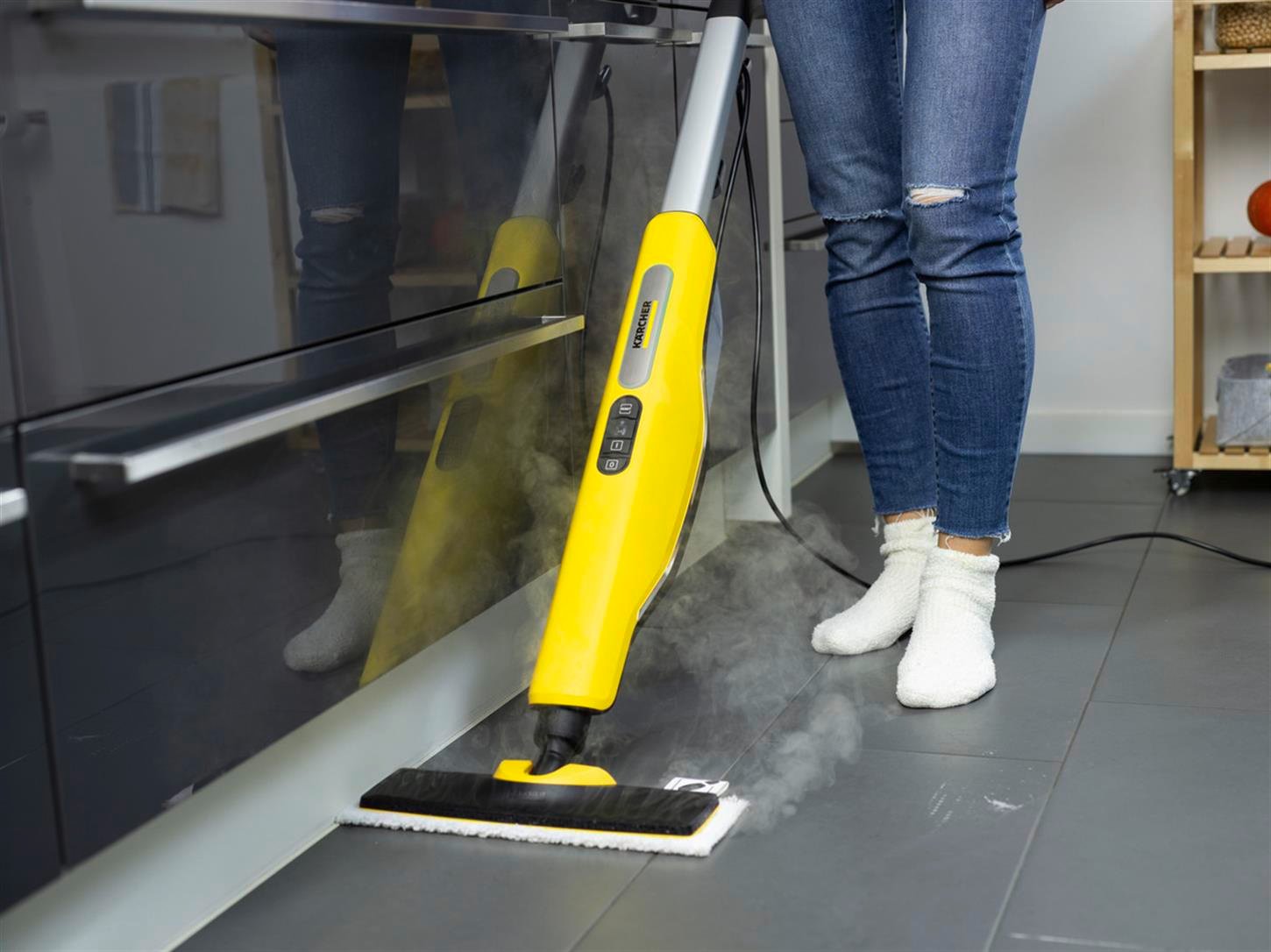 Karcher makinesi, yüksek basınçlı buhar ve profesyonel temizlik çözümleri kullanarak zemindeki lekeleri ve kirleri etkili bir şekilde temizler. Özel temizlik başlıkları ile işlem tamamlanır.